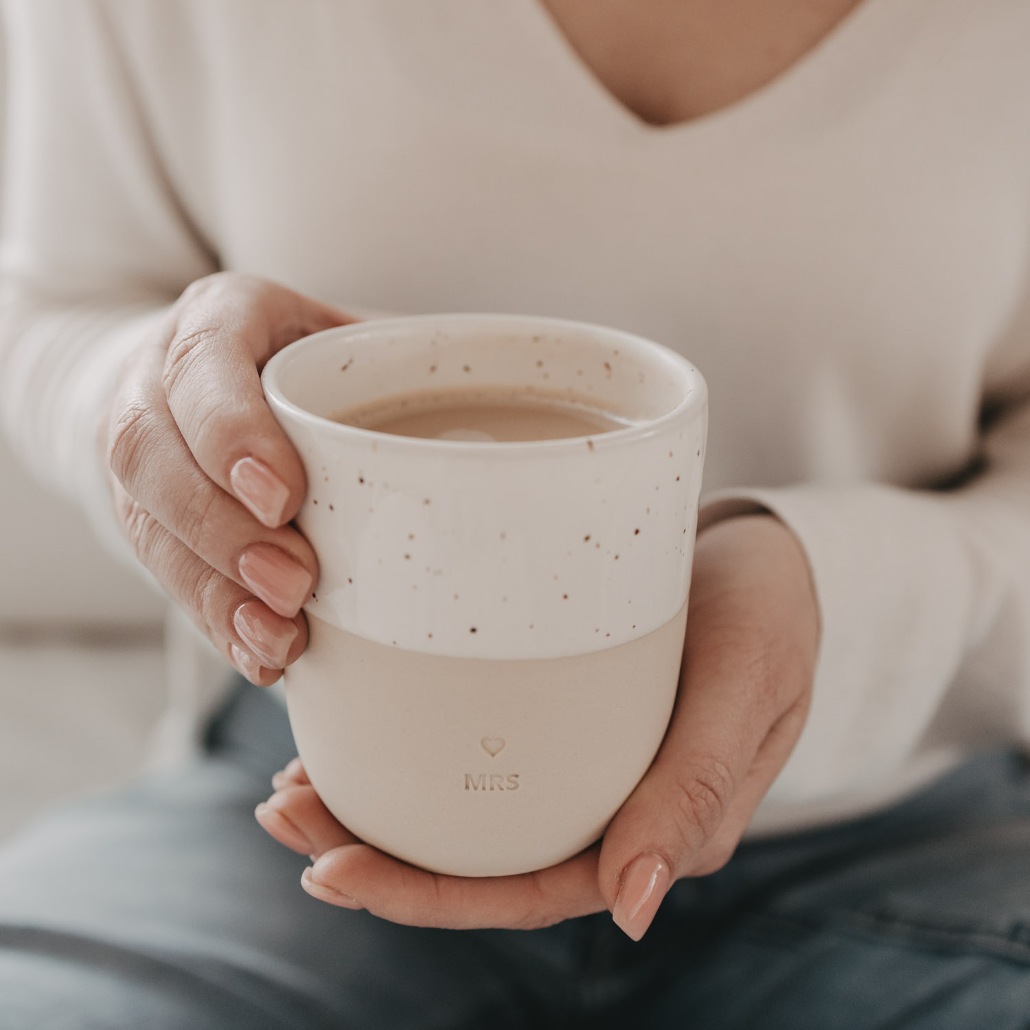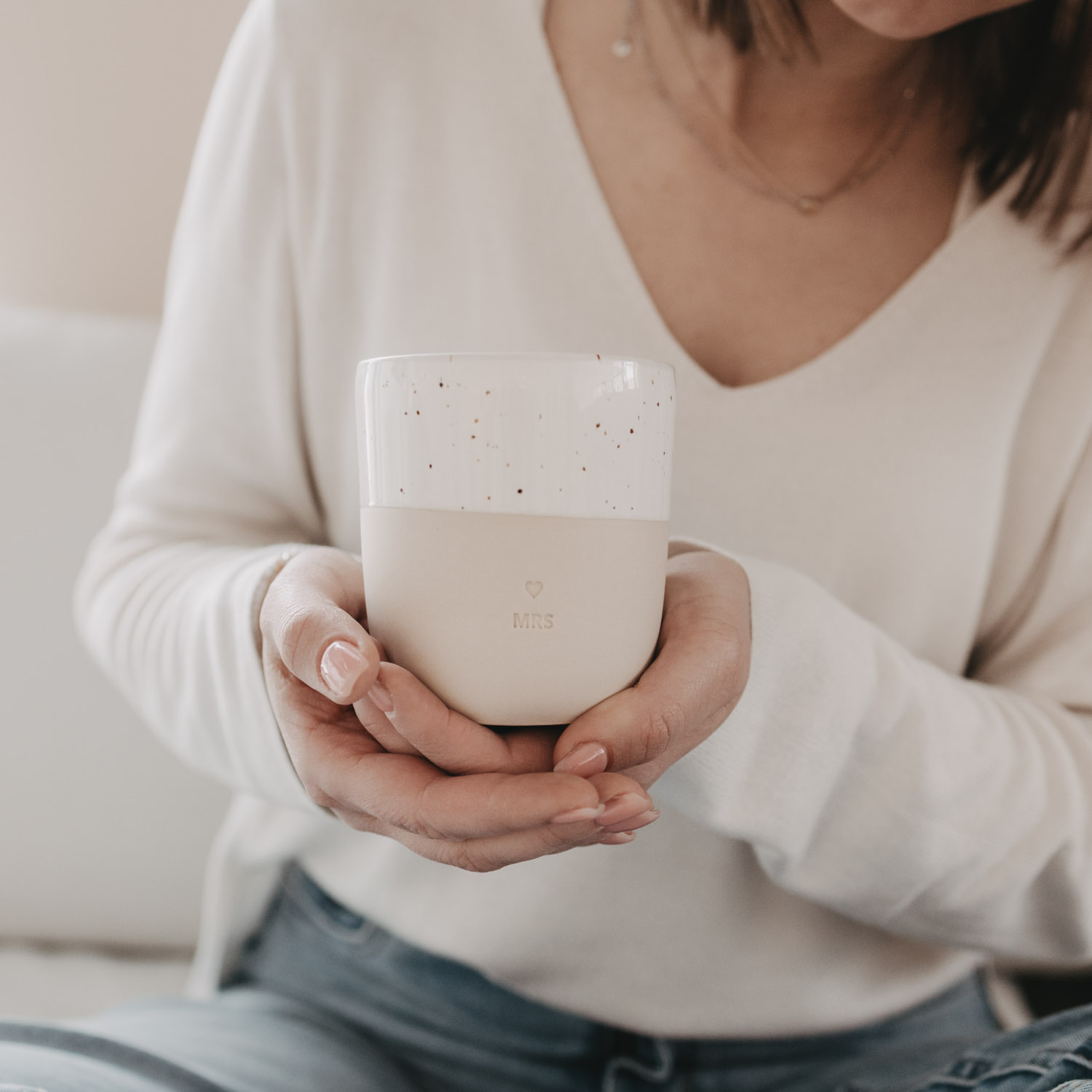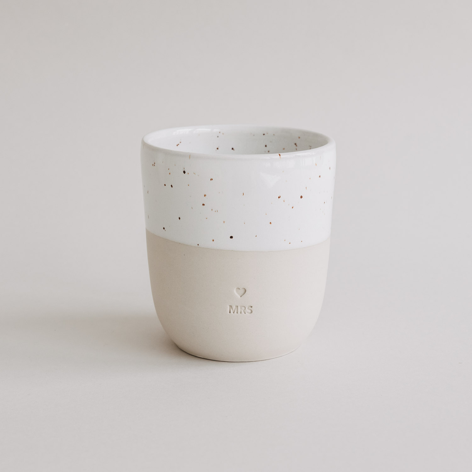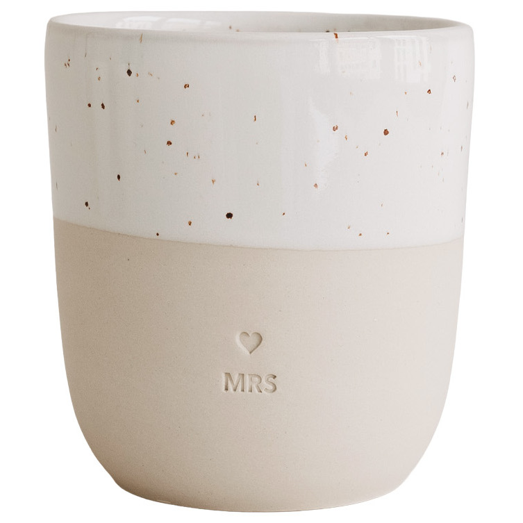 Der neue, tägliche Begleiter für die Braut - der schöne Steingut-Becher von Eulenschnitt mit Prägung auf der Vorderseite. Er eignet sich perfekt als Geschenk zur Hochzeit oder zum Jahrestag.