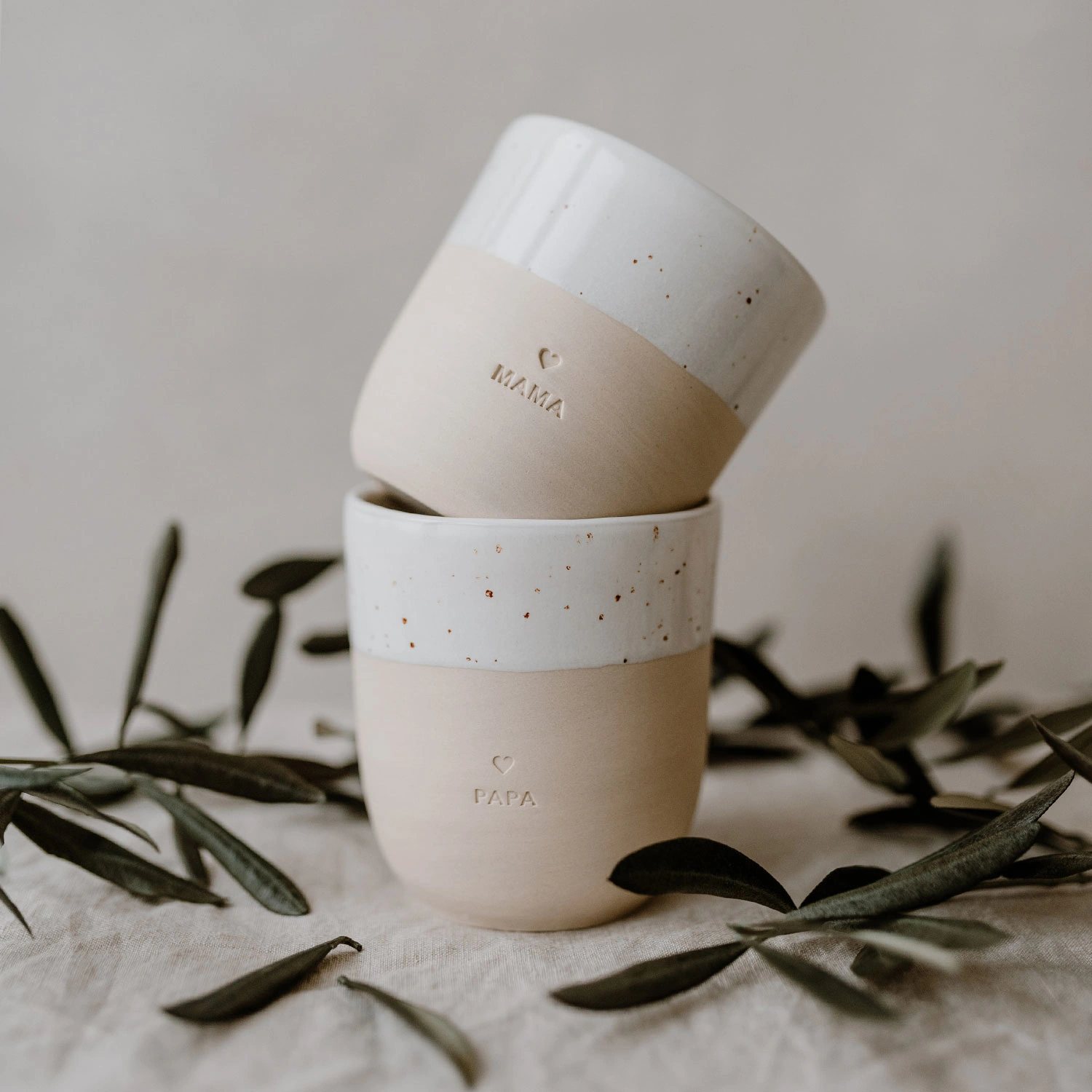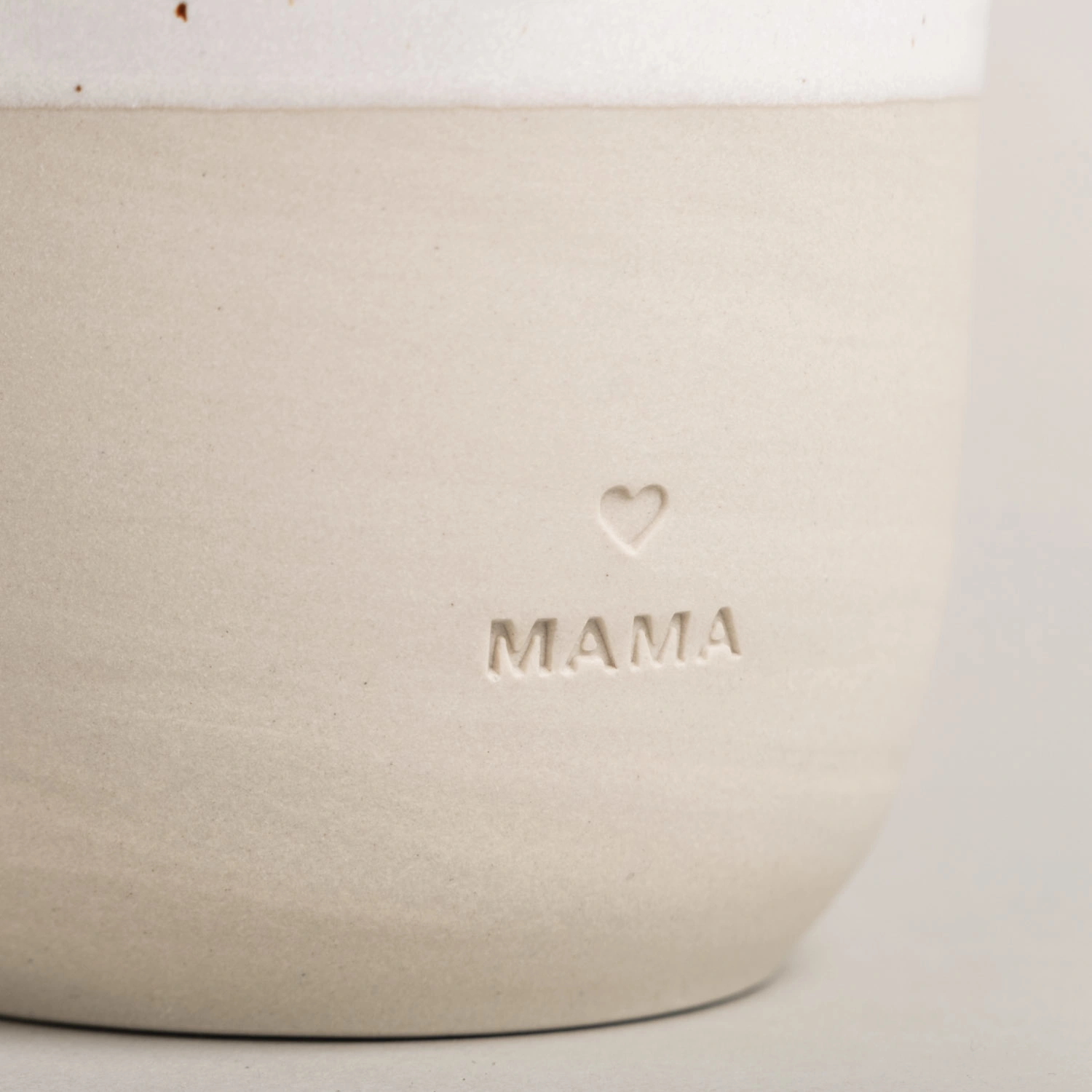 Die Aufschrift "MAMA" wird im Produktionsprozess als Blindprägung in den Ton gestempelt. Im Anschluss folgt die Glasur, die jeden Eulenschnitt-Becher zum Highlight macht. Jeder Becher wird in liebevoller Handarbeit in einer portugiesischen Manufaktur hergestellt.