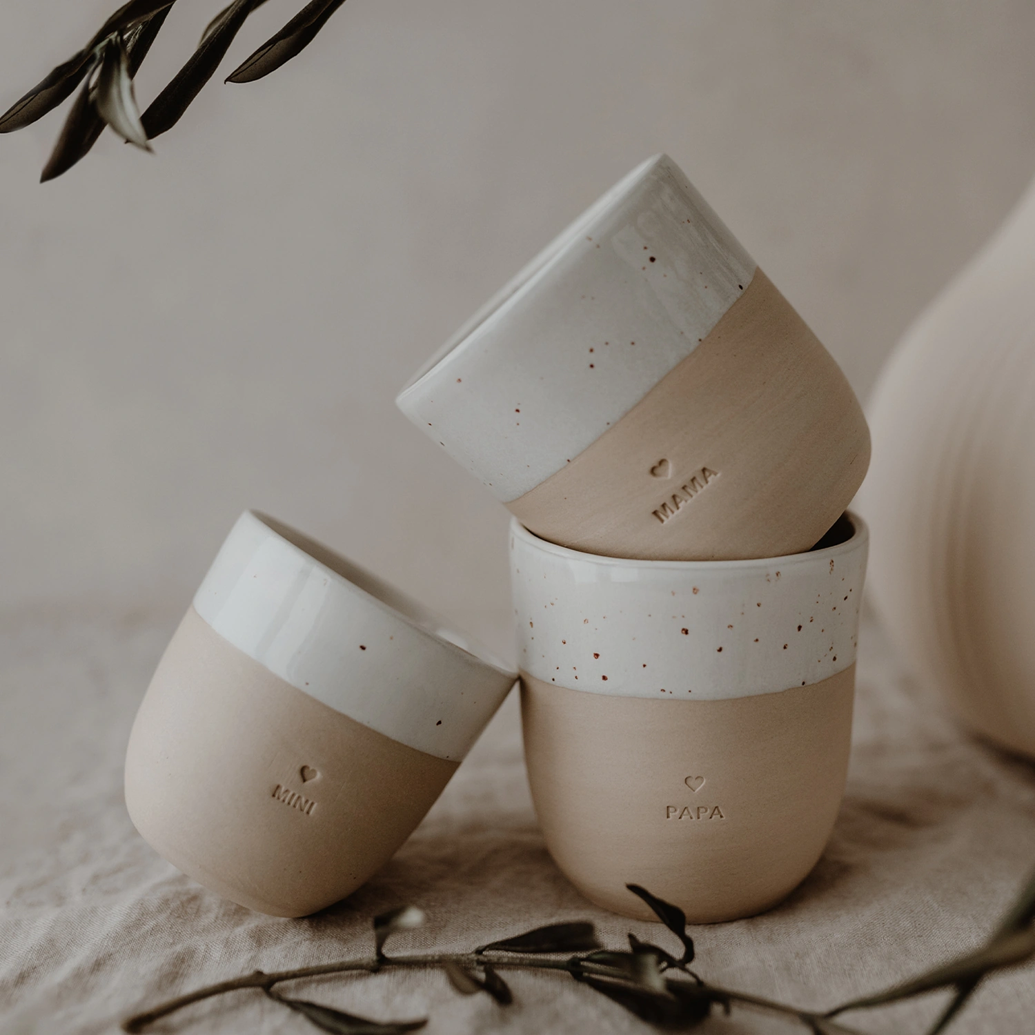 Jeder Becher ein Unikat - das sind die Steingutbecher von Eulenschnitt ❤