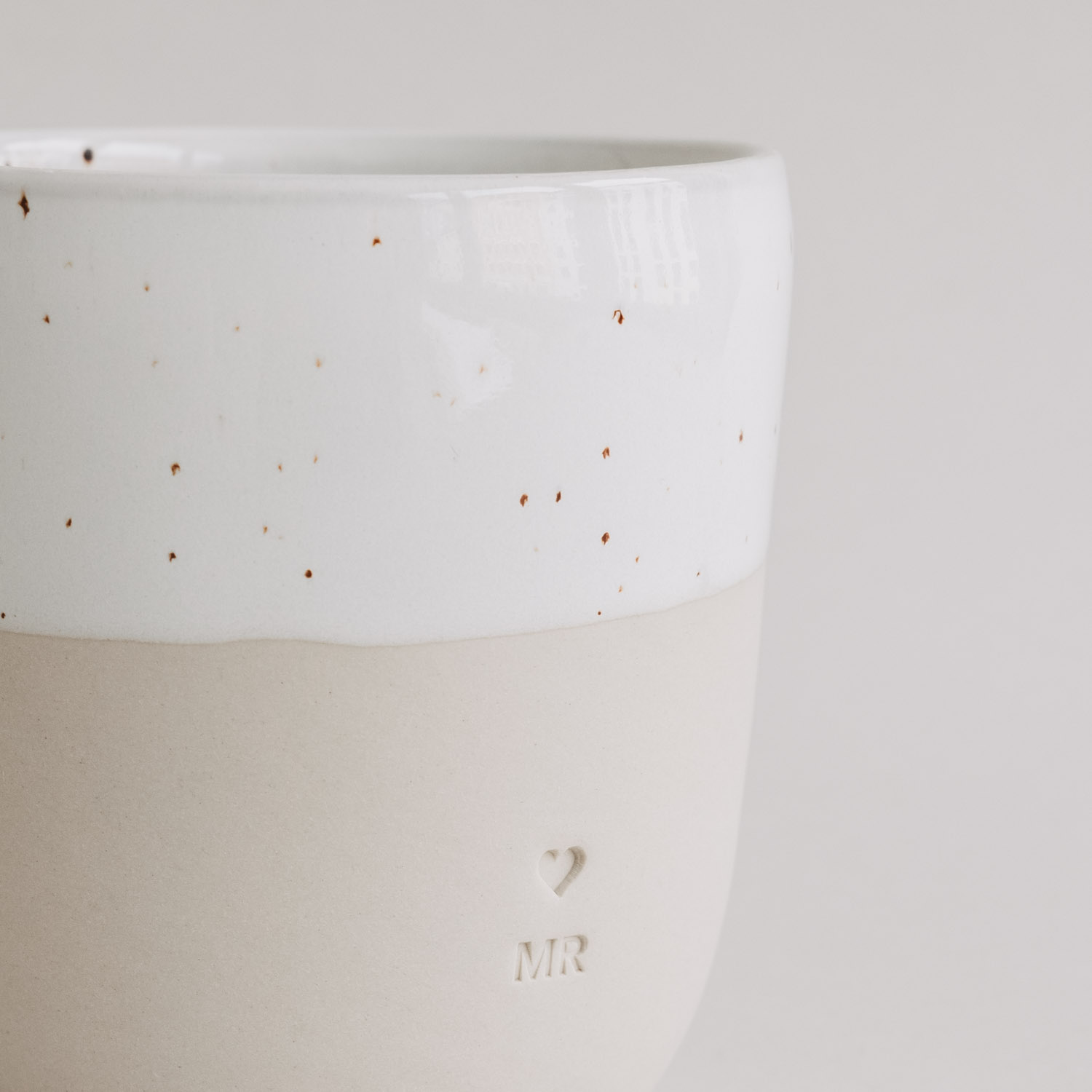 Der neue, tägliche Begleiter für den Bräutigam - der schöne Steingut-Becher von Eulenschnitt mit Prägung auf der Vorderseite. Er eignet sich perfekt als Geschenk zur Hochzeit oder zum Jahrestag.
