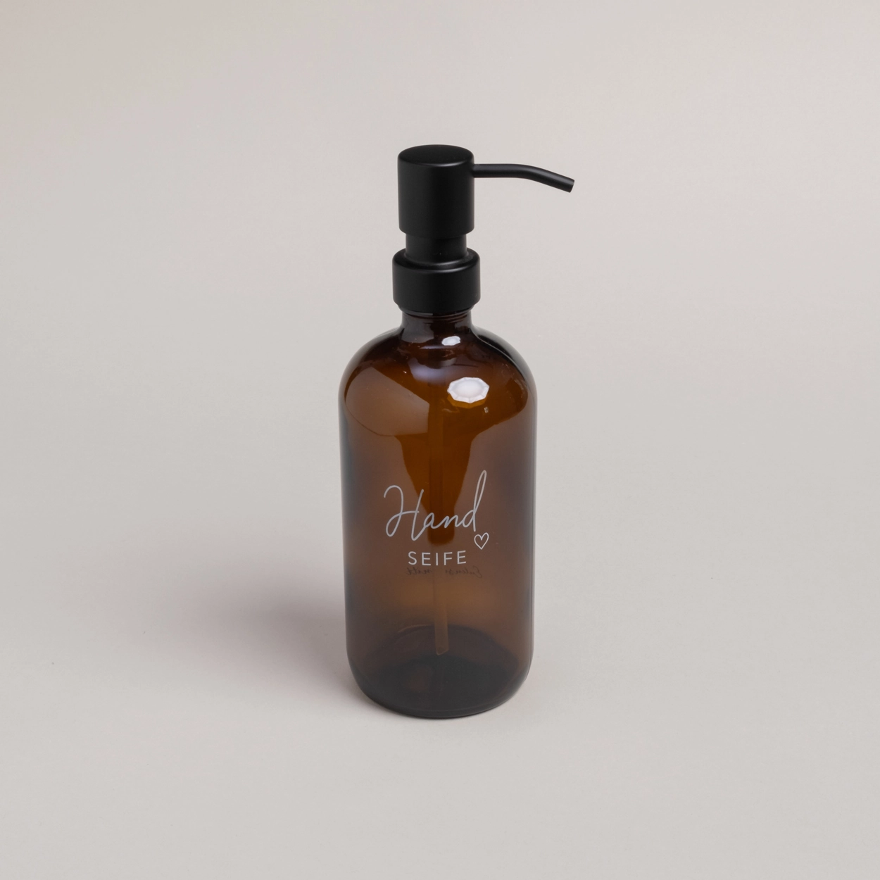 Eulenschnitt Seifenspender mit Aufdruck aus Glas, braun, 500 ml