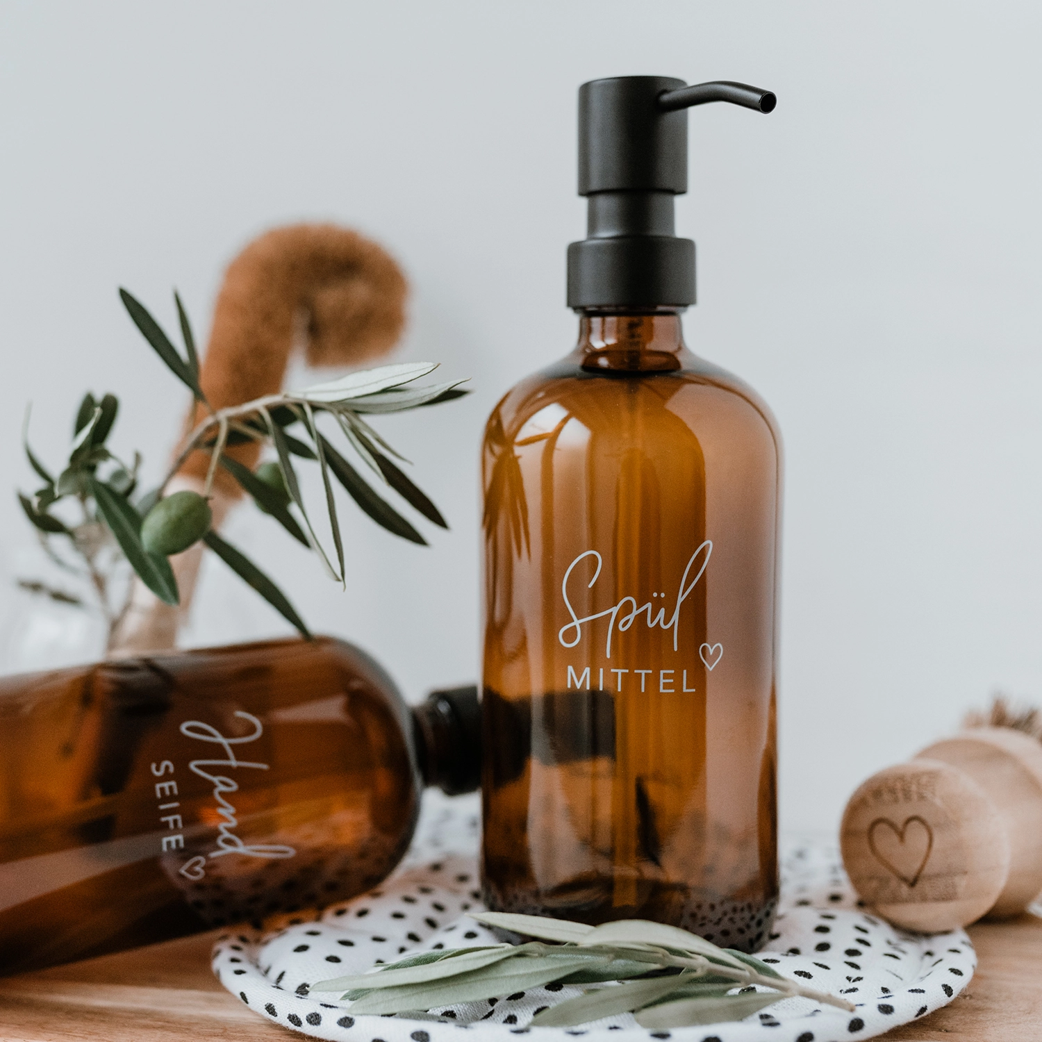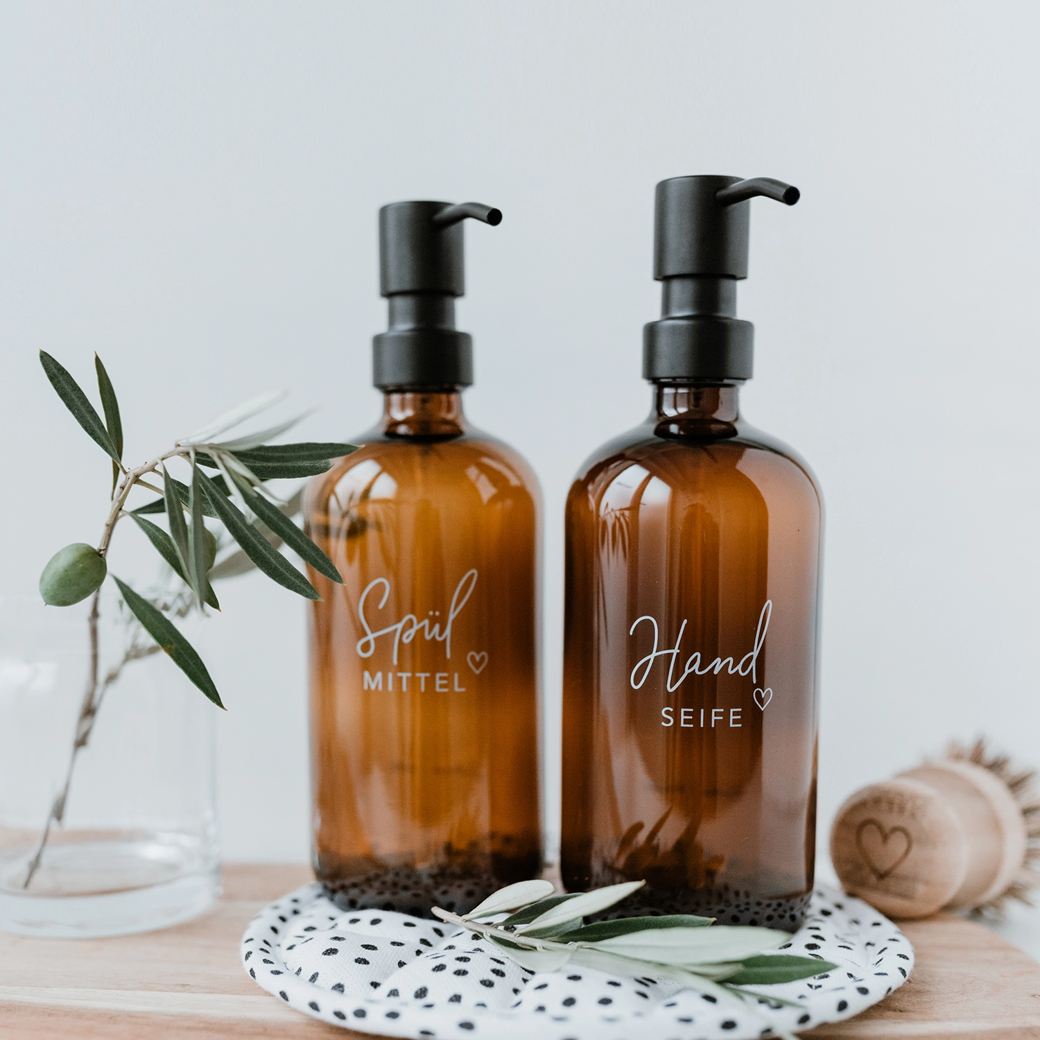 Du hast ihn gefunden - dein neuer Spülmittelspender aus Glas. Zusammen mit dem optionalen Handseifenspender verleiht das Duo deiner Spüle eine neue, ansprechende und hochwertige Optik. Die schweren Spender aus braunem Glas lass sich einfach befüllen und stehen stabil. Der Pumpverschluss ist hochwertig verarbeitet und in mattem schwarz veredelt.