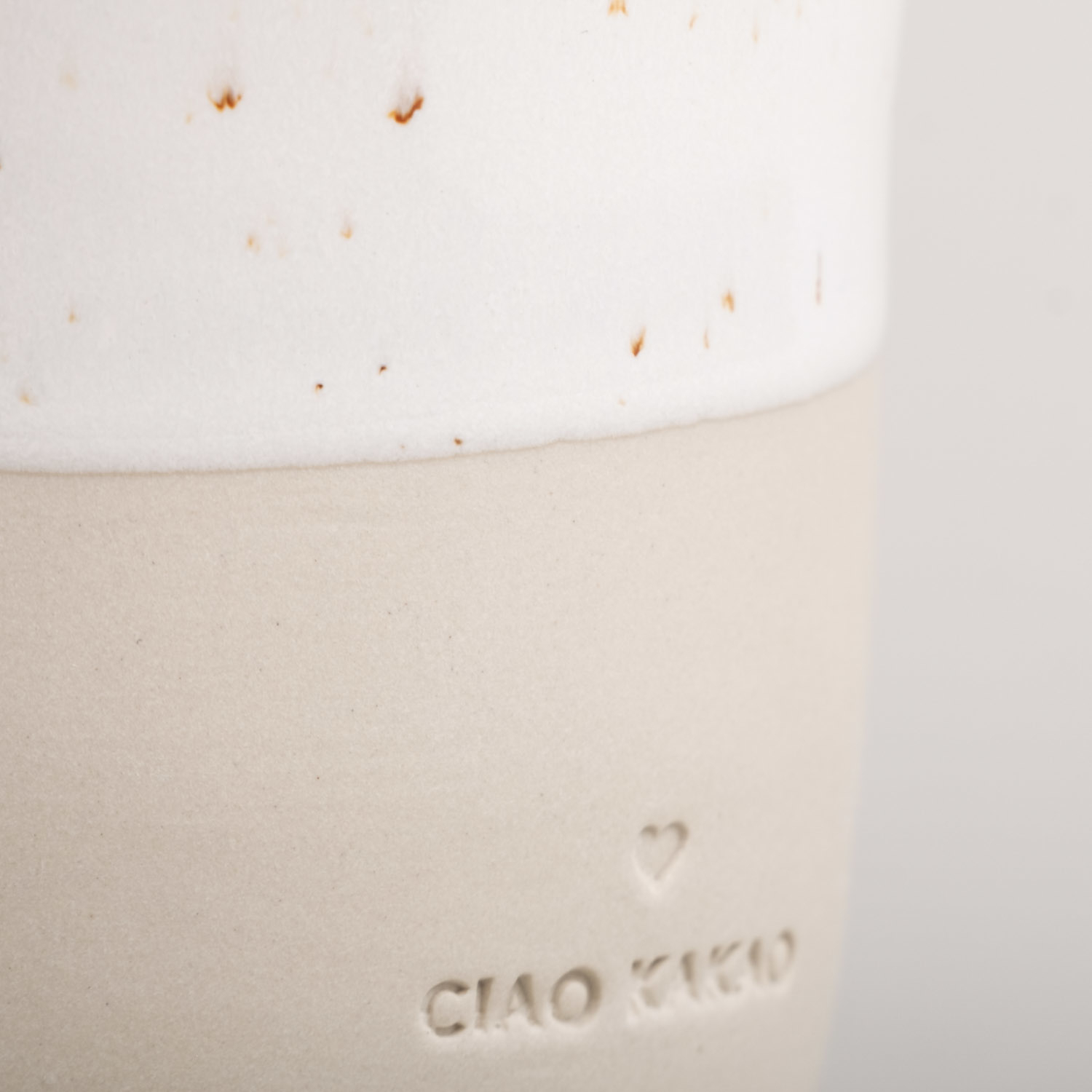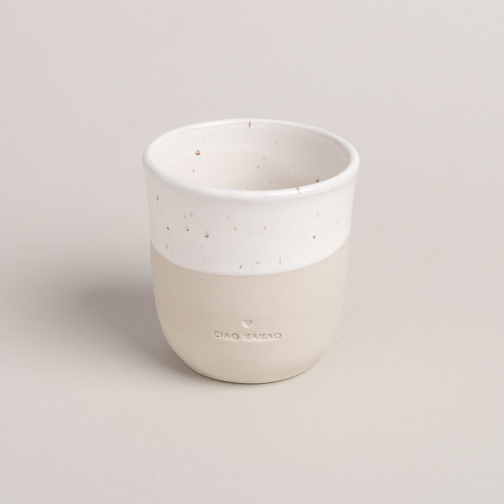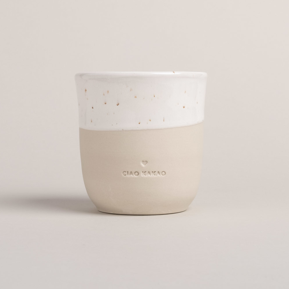 Ciao Kakao! Dieser schöne Steingut-Becher ist nicht nur für Kakao-Liebhaber geeignet. Mit 320 ml Fassungsvermögen lässt sich in diesem Becher auch ein leckerer Cappuccino oder Caffé Americano zubereiten.