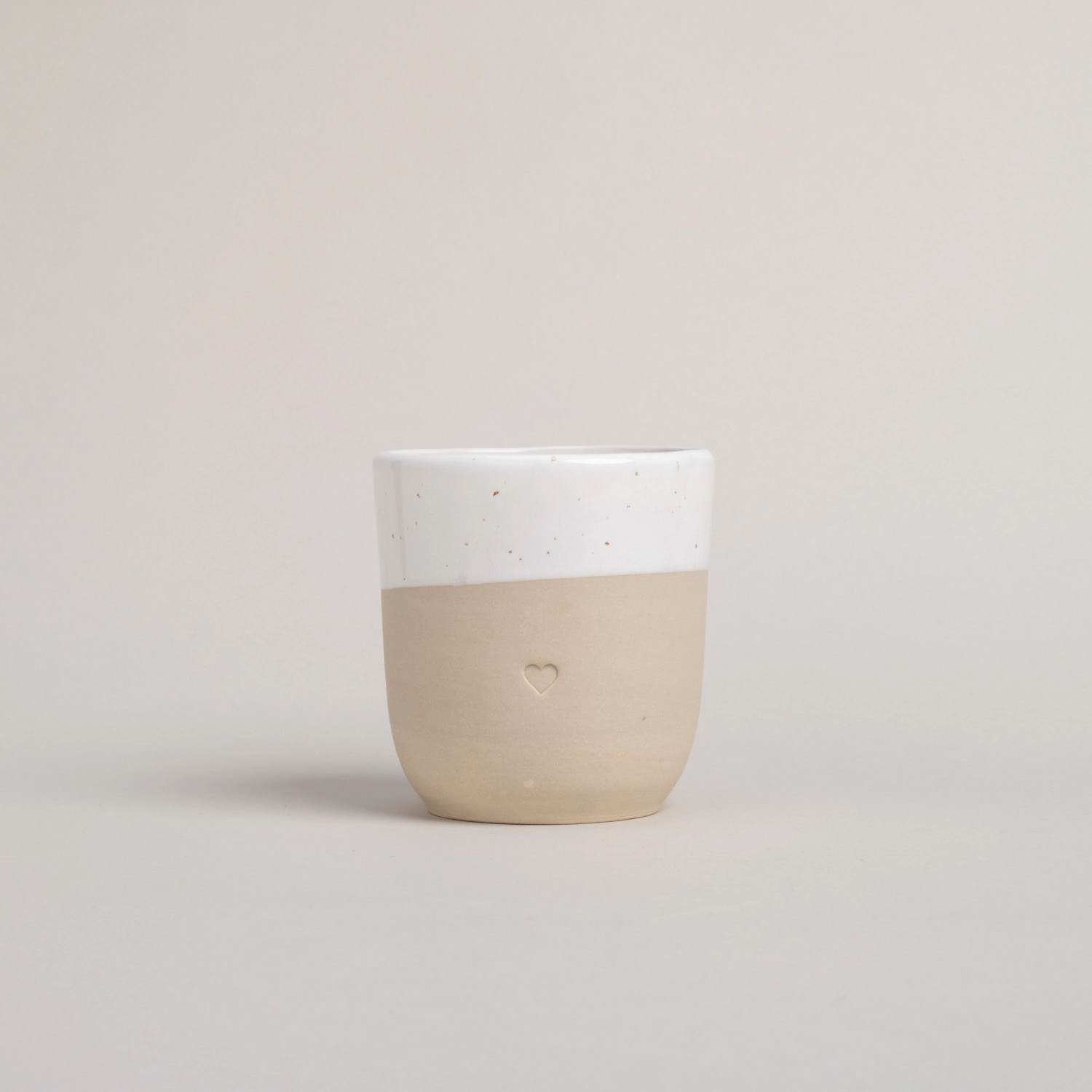 Eulenschnitt Steingut-Becher mit Blindprägung Herz, handgefertigt in Portugal