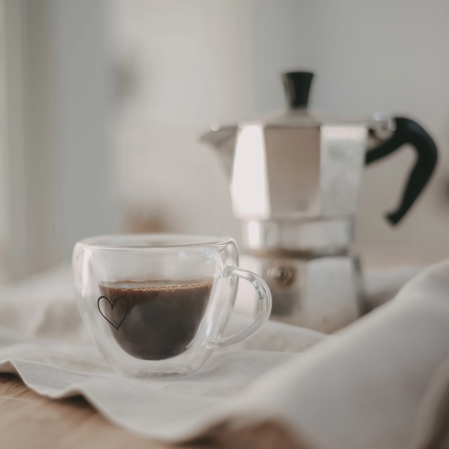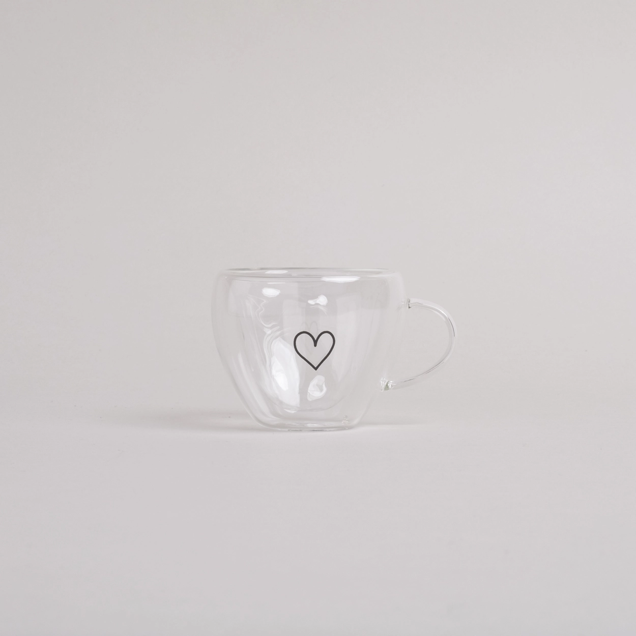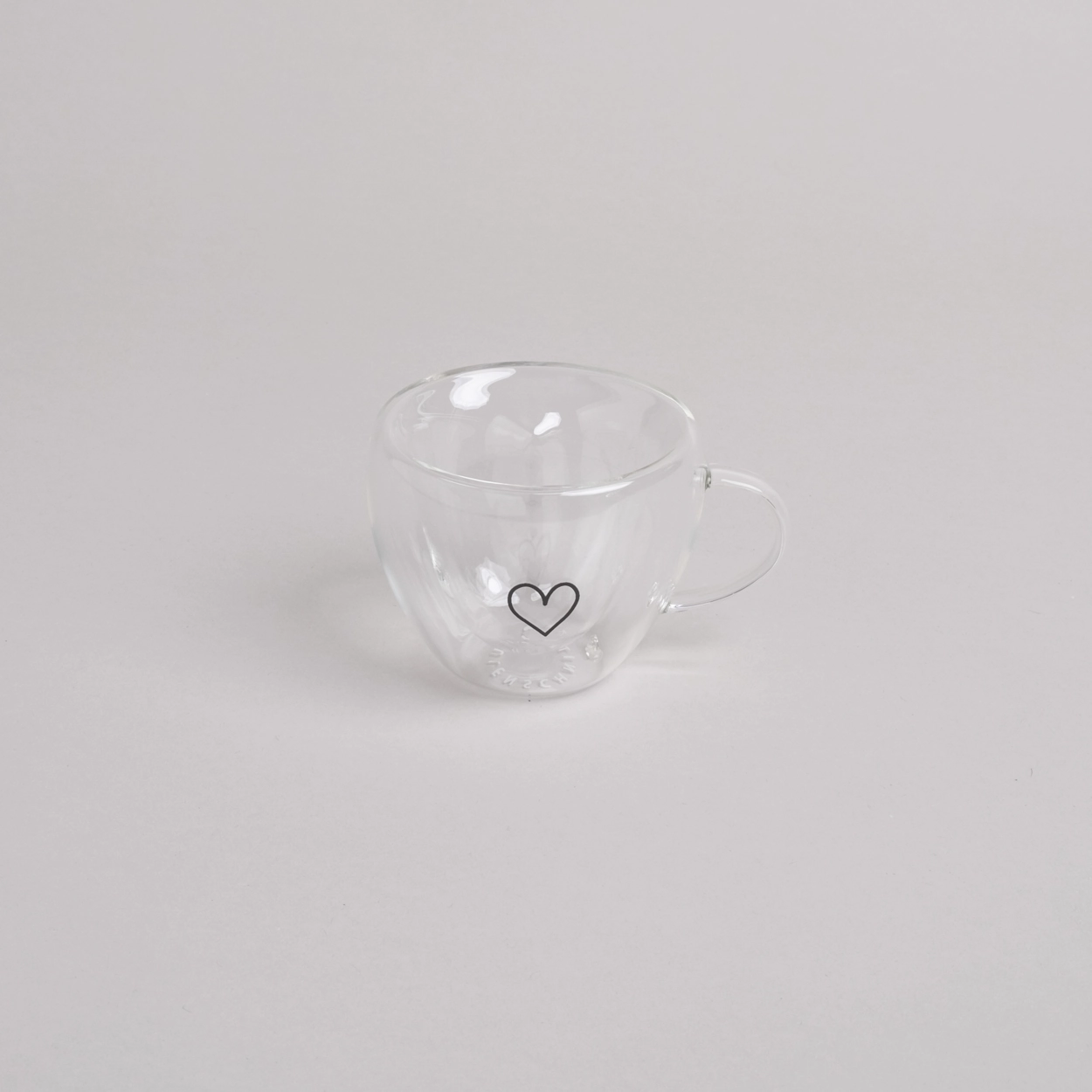 Eulenschnitt kleine Espressotasse in Herzform, doppelwandig aus Glas für 50 ml