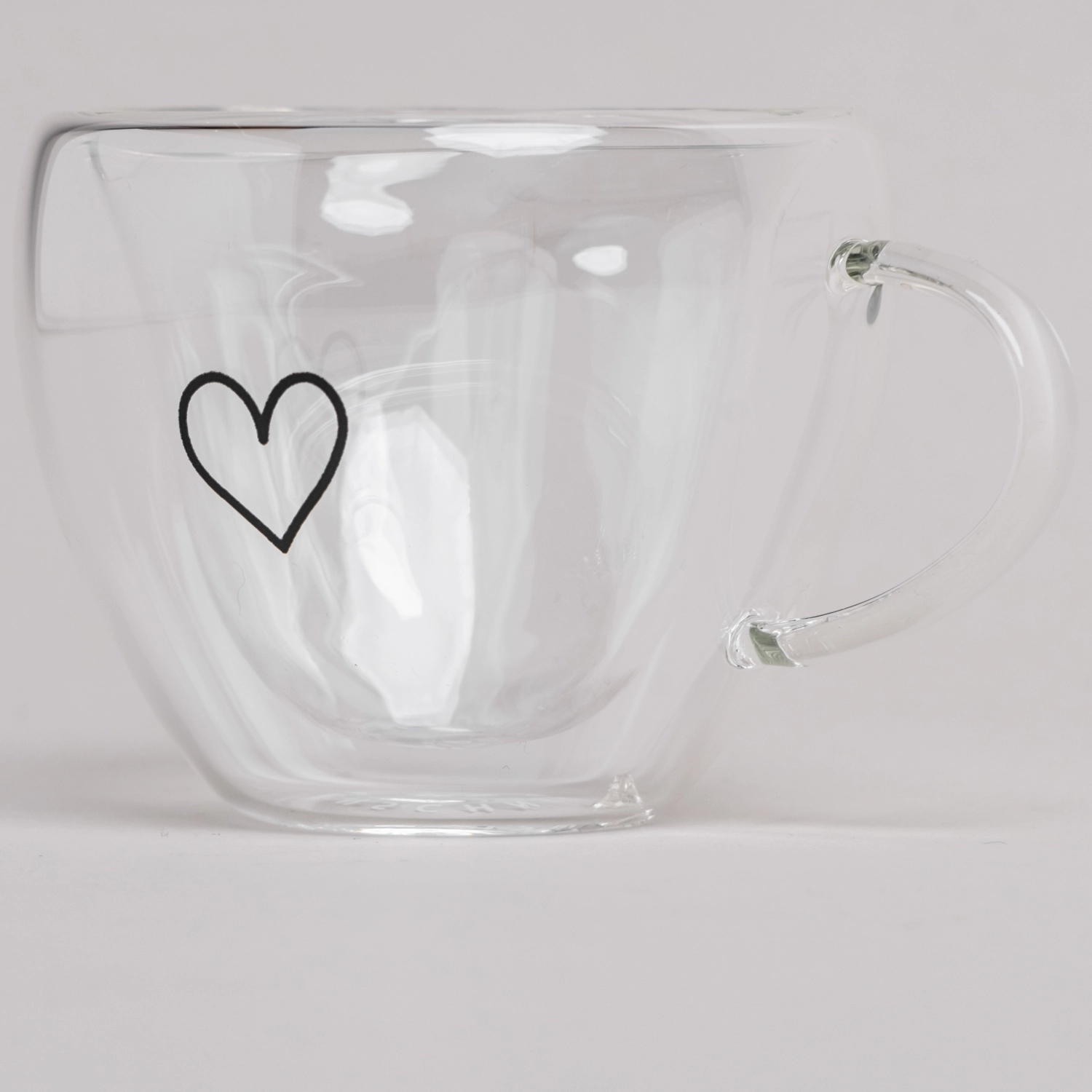 Diese stilvolle, doppelwandige Espressotasse ist in Herzform gestaltet und gleichzeitig mit einem weiteren Herz bemalt. Durch die doppelte Wand aus Glas kannst du dich nicht mehr verbrühen und genießt einen leckeren Espresso oder kleinen Kaffee am Morgen. Gleichzeitig isoliert die Tasse deinen Kaffee, sodass er länger heiß bleibt.